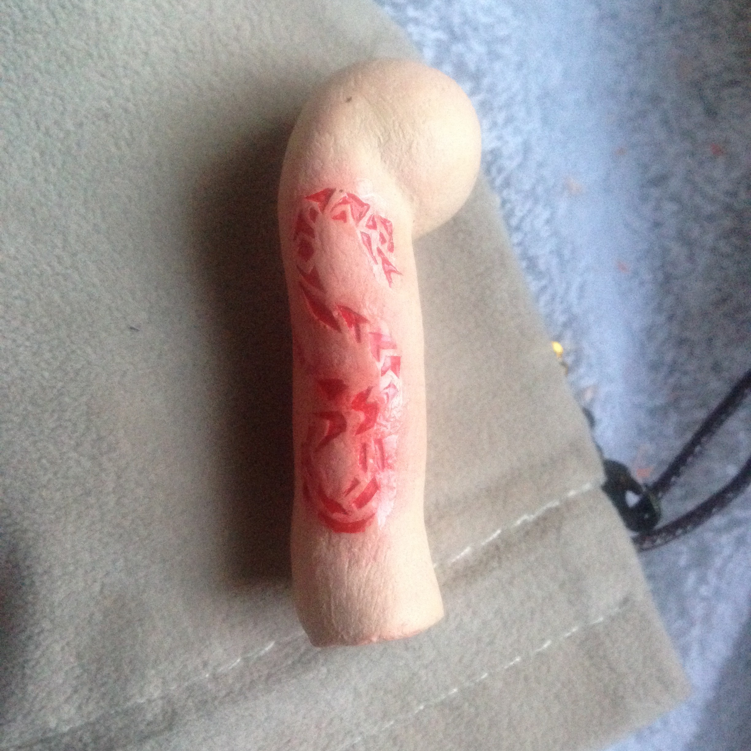 名古屋のAnother Infernoに行って施術してもらいました。 すごい感動です。痛みも想像よりあったけど、流した血とかけた時間からくる達成感はひとしおでした。 そして人形にも同じ模様を・・・と思ったのですが、左右間違えてしまいました。 ま、綺麗にできたから良しとします。 これで安心して新年を迎えられそうです。 良いお年を! PR